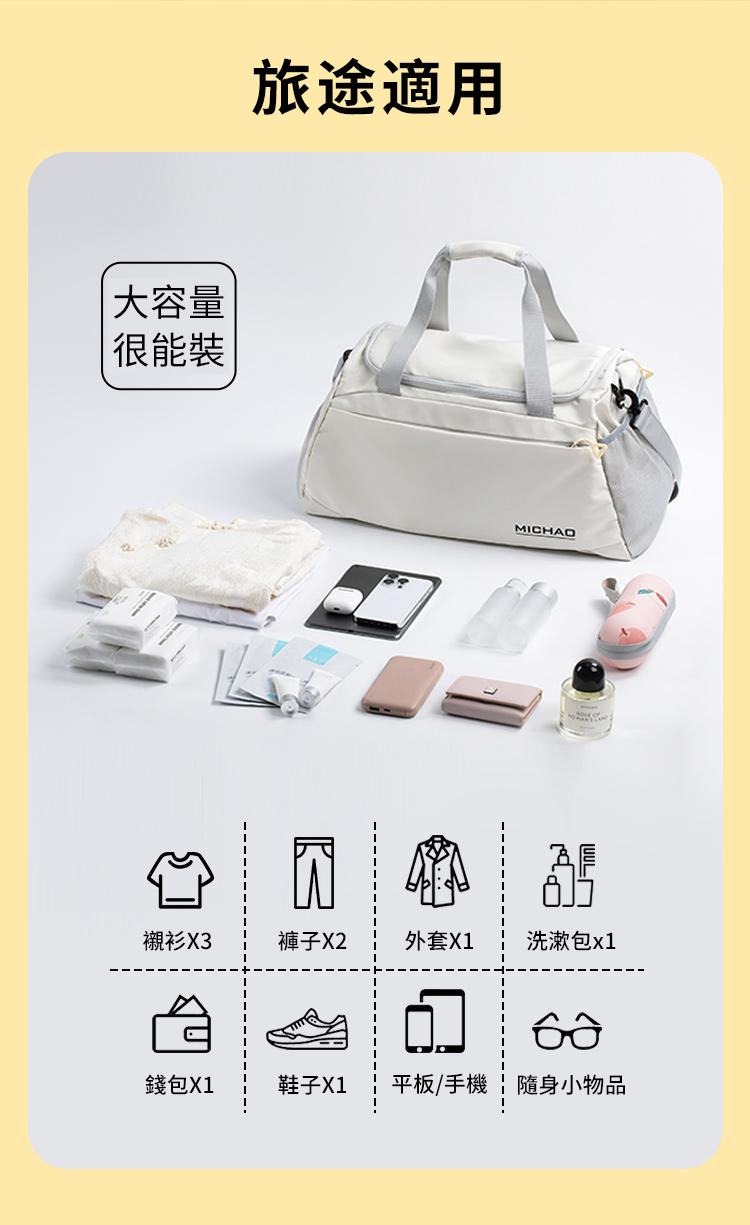 自帶鞋艙City多層休閒輕旅包乾濕分層超能裝出差、旅行、外宿、運動、登機、露營