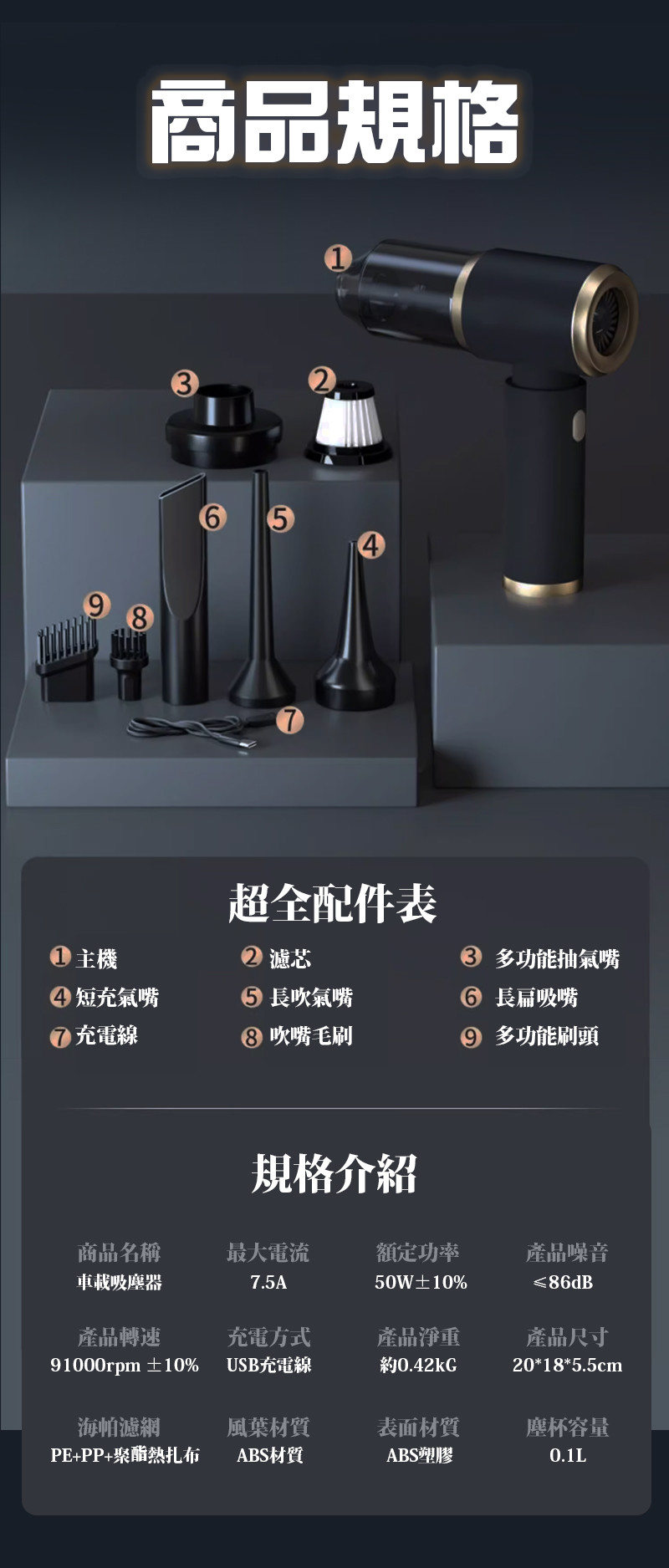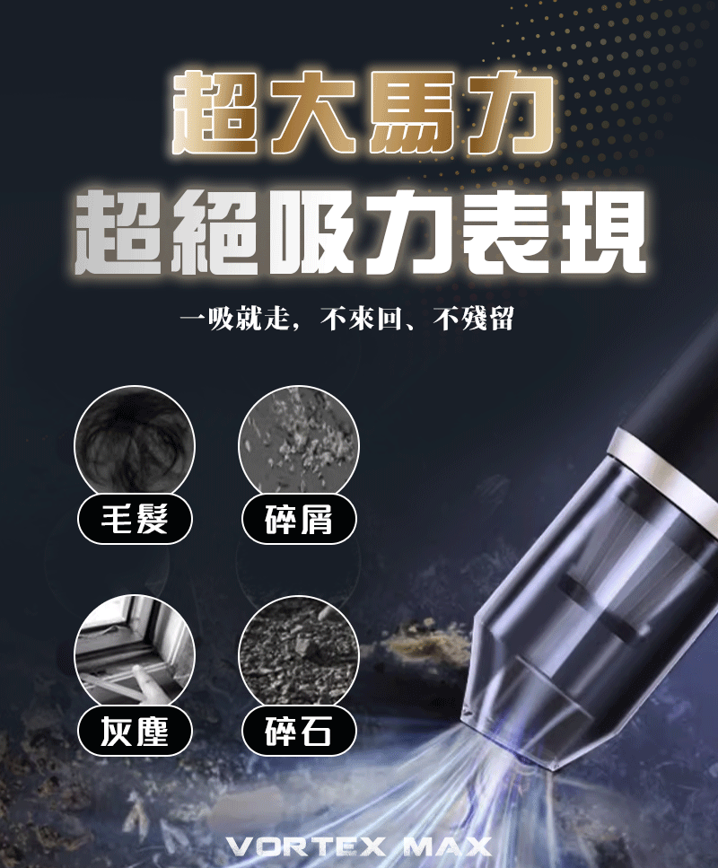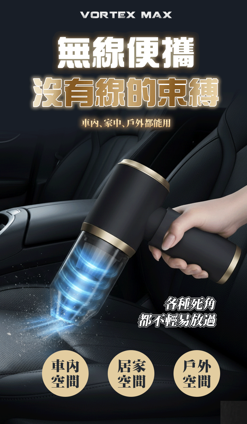 小鋼炮車用吸塵器ᴾʳᵒ 超強吸力無線操作,零死角一吸即淨!